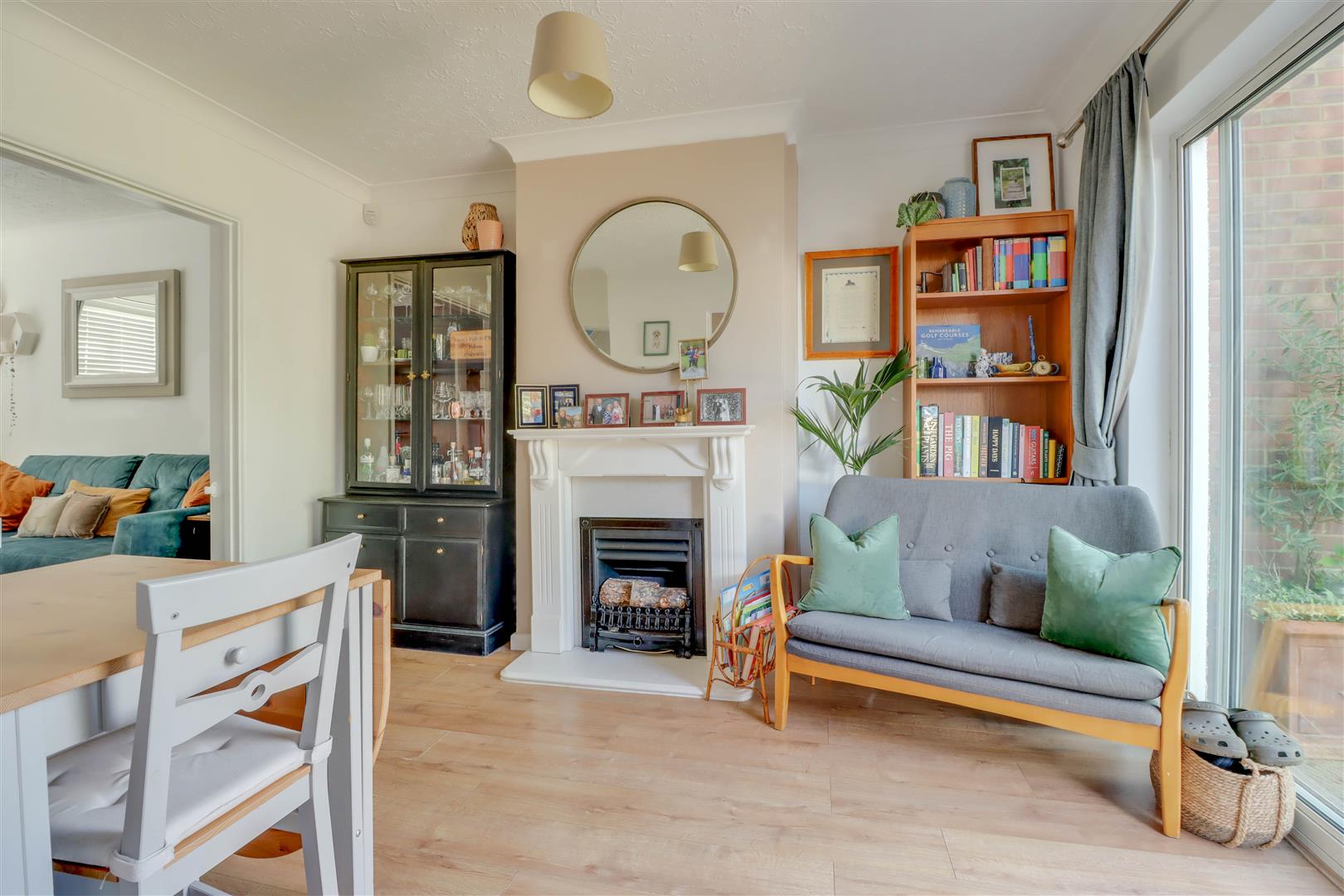 Double glazed patio doors to rear garden. Fireplace. Radiator. Coved ceiling. Laminate finish to floor.