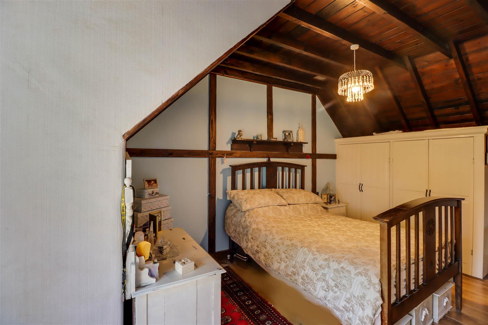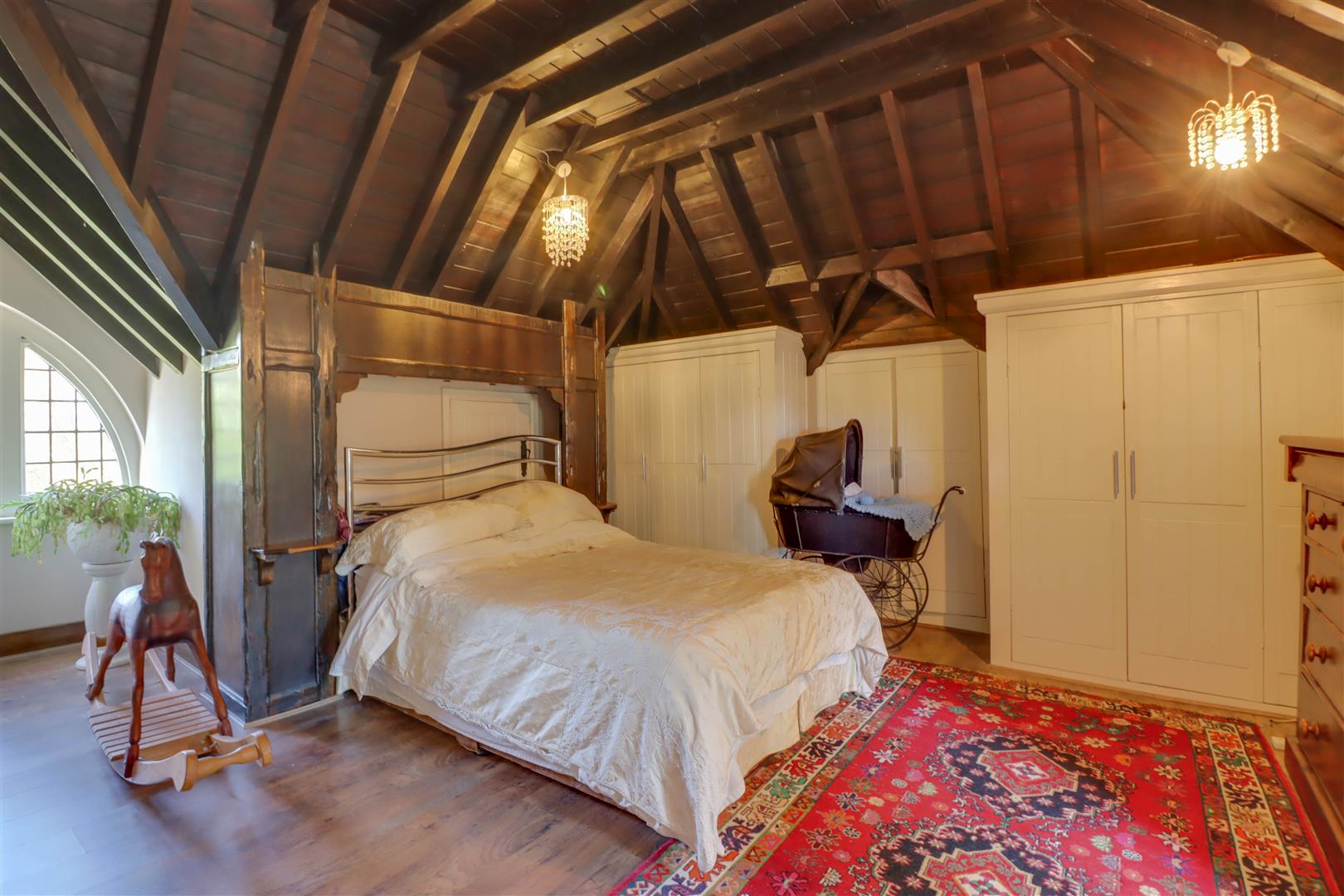 Window to rear, radiator, wood effect floor covering, fitted wardrobes, feature wooden pannelling