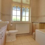 Window to rear, half tiled low flush wc, part tiled