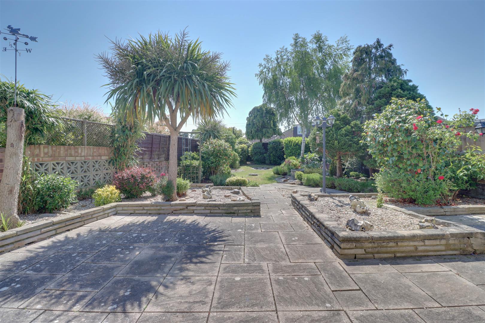Generous rear garden, extensive patio to rear with well stocked flower and shrubs borders with remainder laid to lawn. Fencing to boundaries.