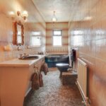 Double glazed window to rear. Suite comprising of corner bath, low level W.C. and wash hand basin. Extensive tiling to walls. Cupboard.