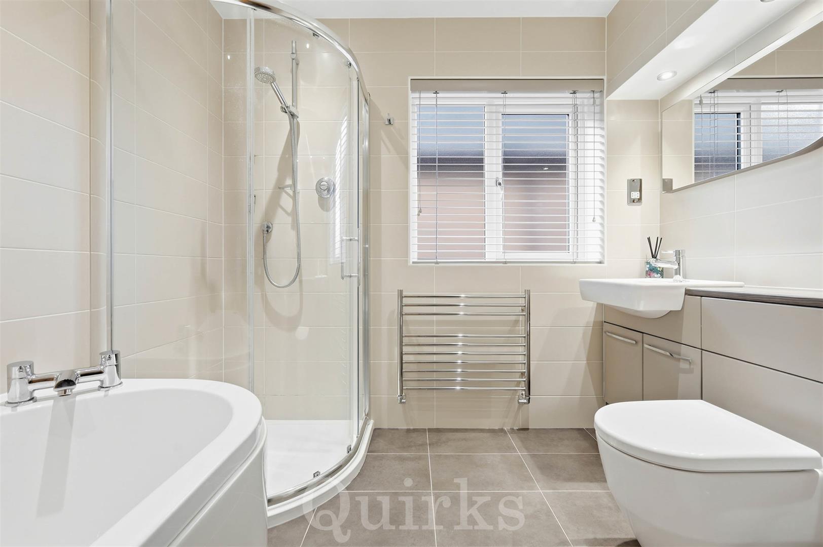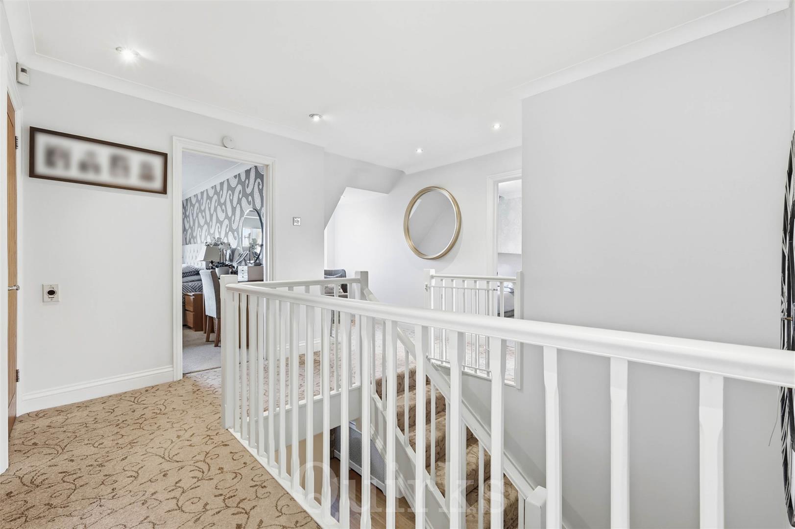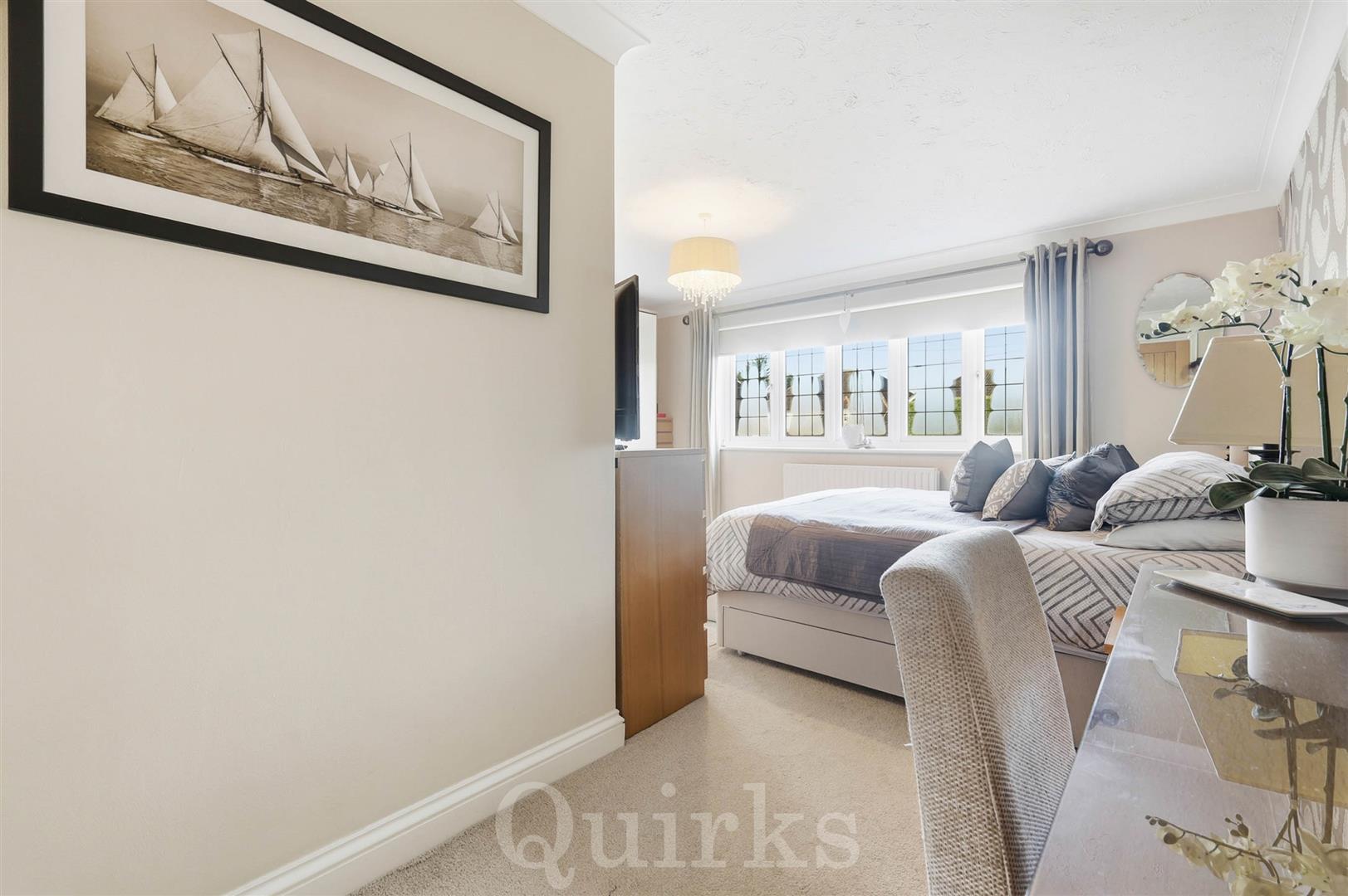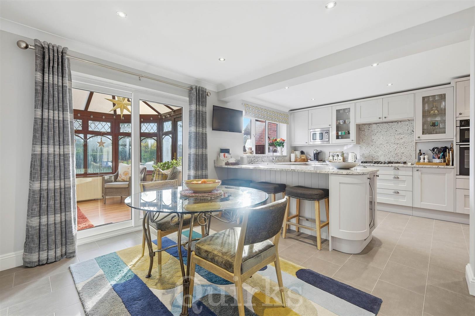 An immaculately presented executive five bedroom detached family home, situated in North Billericay, with impressive accommodation of approximately 2,400 square feet and a rear garden measuring 120ft in depth. This beautifully presented property is within walking distance of Buttsbury & Mayflower schools, convenience shops and located on the 300 bus route. Stock Brook Country Club, Norsey Woods Nature Reserve and Lake Meadows Park are also within close proximity. Internally you are immediately greeted by a spacious entrance hallway with central staircase and built-in cloaks cupboard, there is a study with bay window and fitted storage space, modern ground floor W.C, living room with feature gas fireplace, the recently updated kitchen / diner is finished to a high specification with granite worksurfaces, breakfast bar and Neff integrated appliances, including dishwasher, microwave, five ring gas hob, oven and grill, plus a built in fridge / freezer and drinks cooler. There is also a separate utility room with space for washing machine and tumble dryer and side door access. The double glazed conservatory is an excellent size, measuring 22'3 x 9'3, providing an additional reception room or dining area, with French doors leading to the rear garden. The integral double garage, houses the modern Potterton titanium gas boiler, power , lighting and two double up and over doors. There is a part galleried landing leading to five bedrooms, with bedroom one enjoying plenty of natural light, there is also a fully tiled en-suite shower room. The family bathroom also benefits from a modern white suite including paneled bath and separate shower. Externally there is off road parking for several vehicles and scope to add an additional detached garage if required (subject to planning consent being granted)