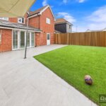 Commences with a paved patio, personal door to garage, Astro turf lawn area, outside lighting and designer rain canopy