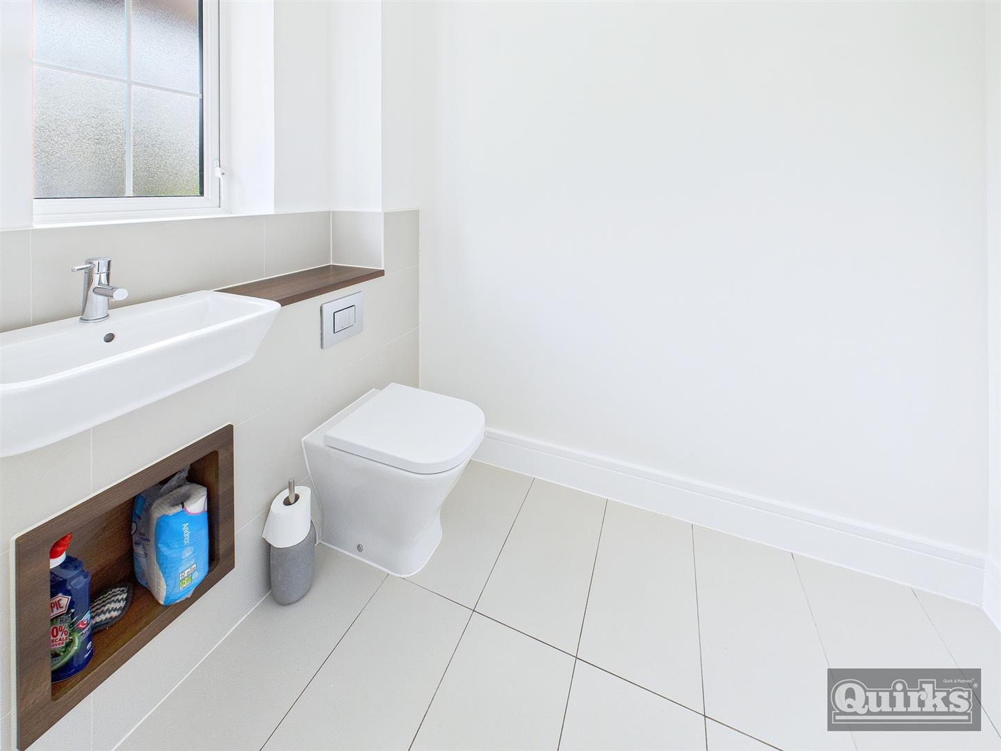 Double glazed window to front, low flush wc and wash hand basin inset to vanity unit, tiling to floor, radiator