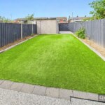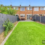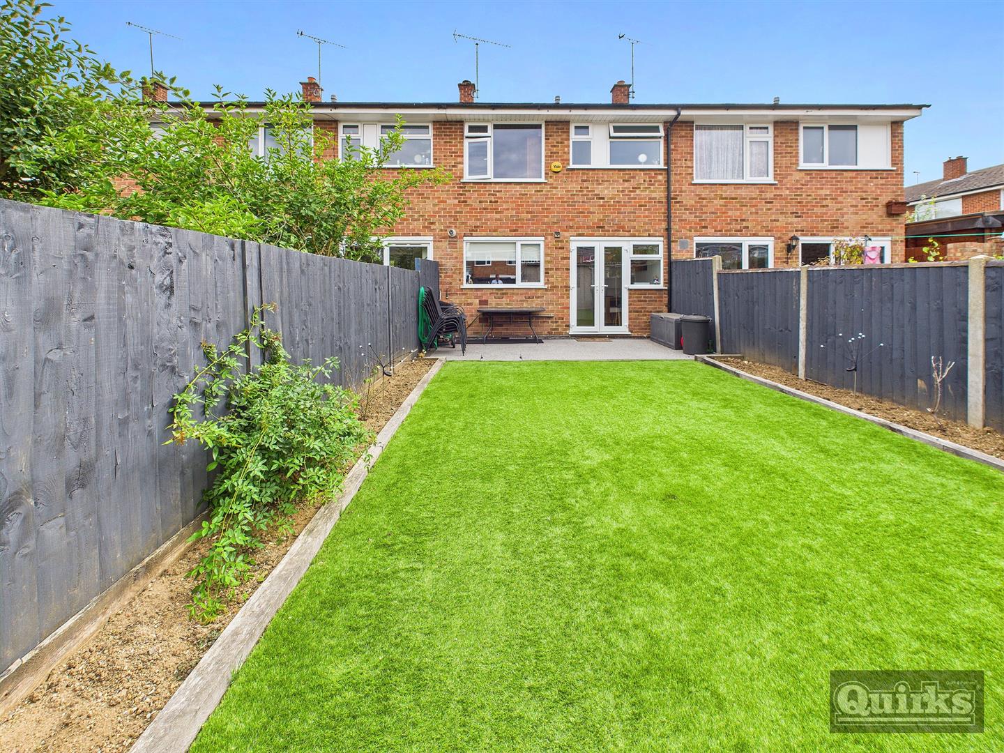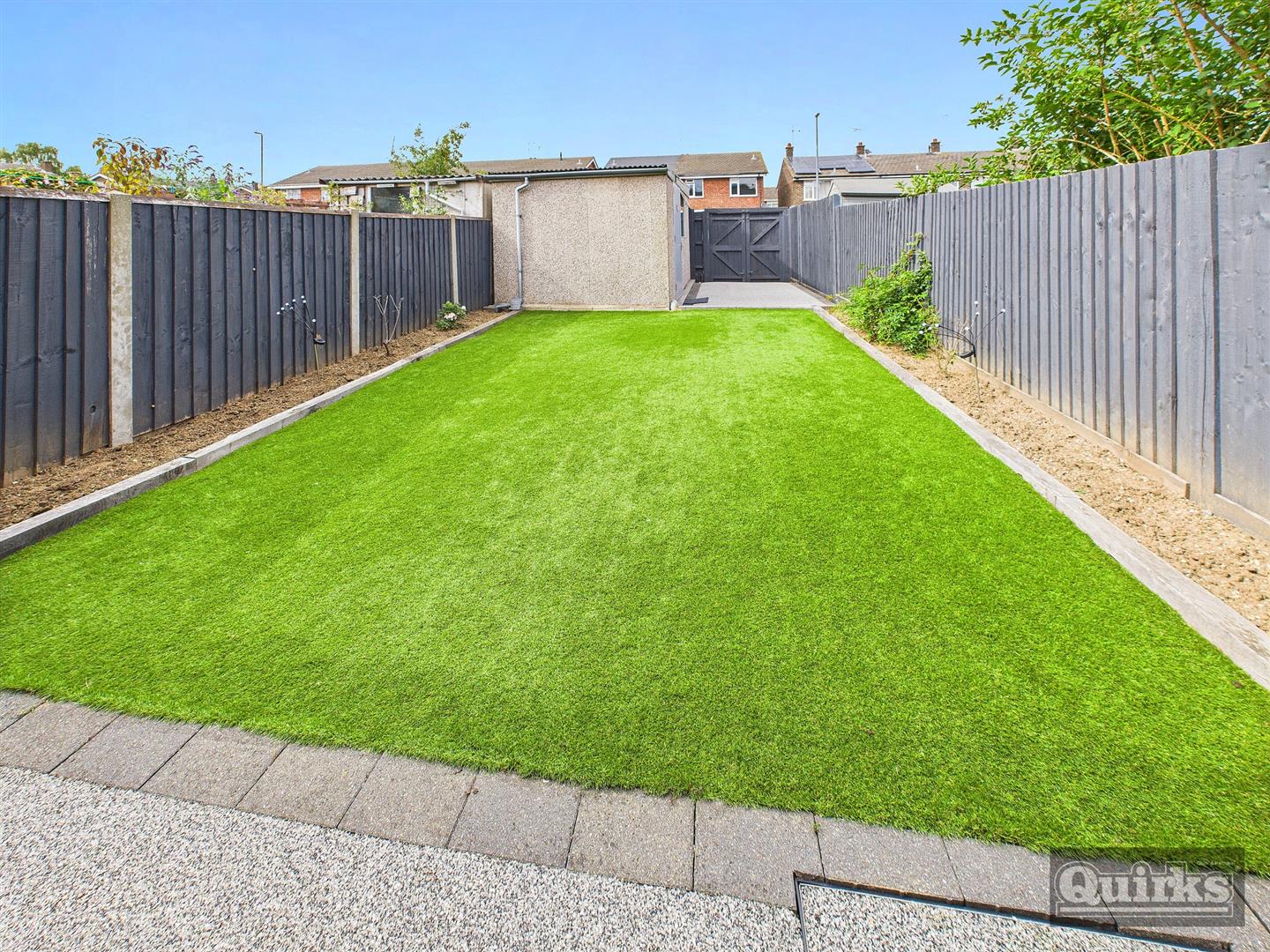Patio to fore, remainder laid to Astro turf with borders for flower and shrubs, double opening gates at bottom of garden, large enough to get a vehicle through, personal door to garage