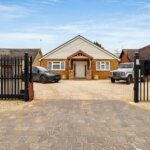 Secure access via remote controlled gates to stone chip driveway affording off road parking for multiple cars, side access to rear, electric vehicle charging point, out side lighting