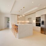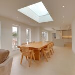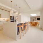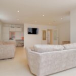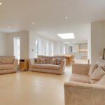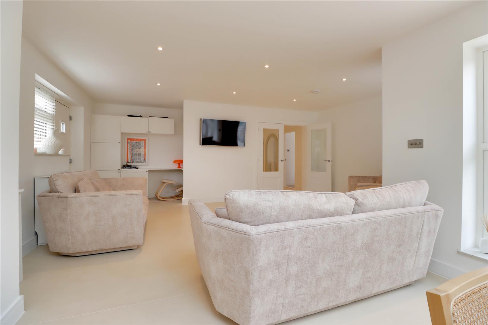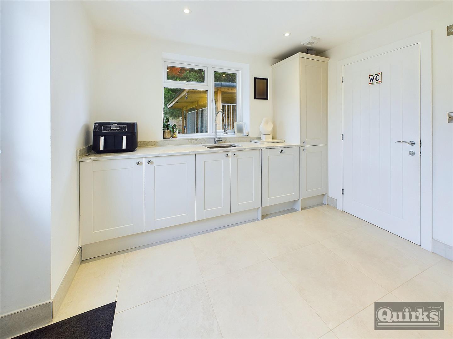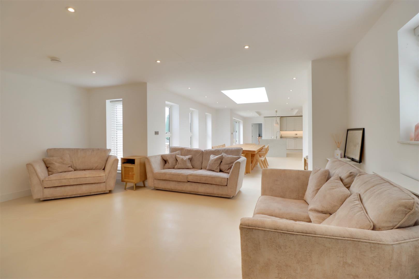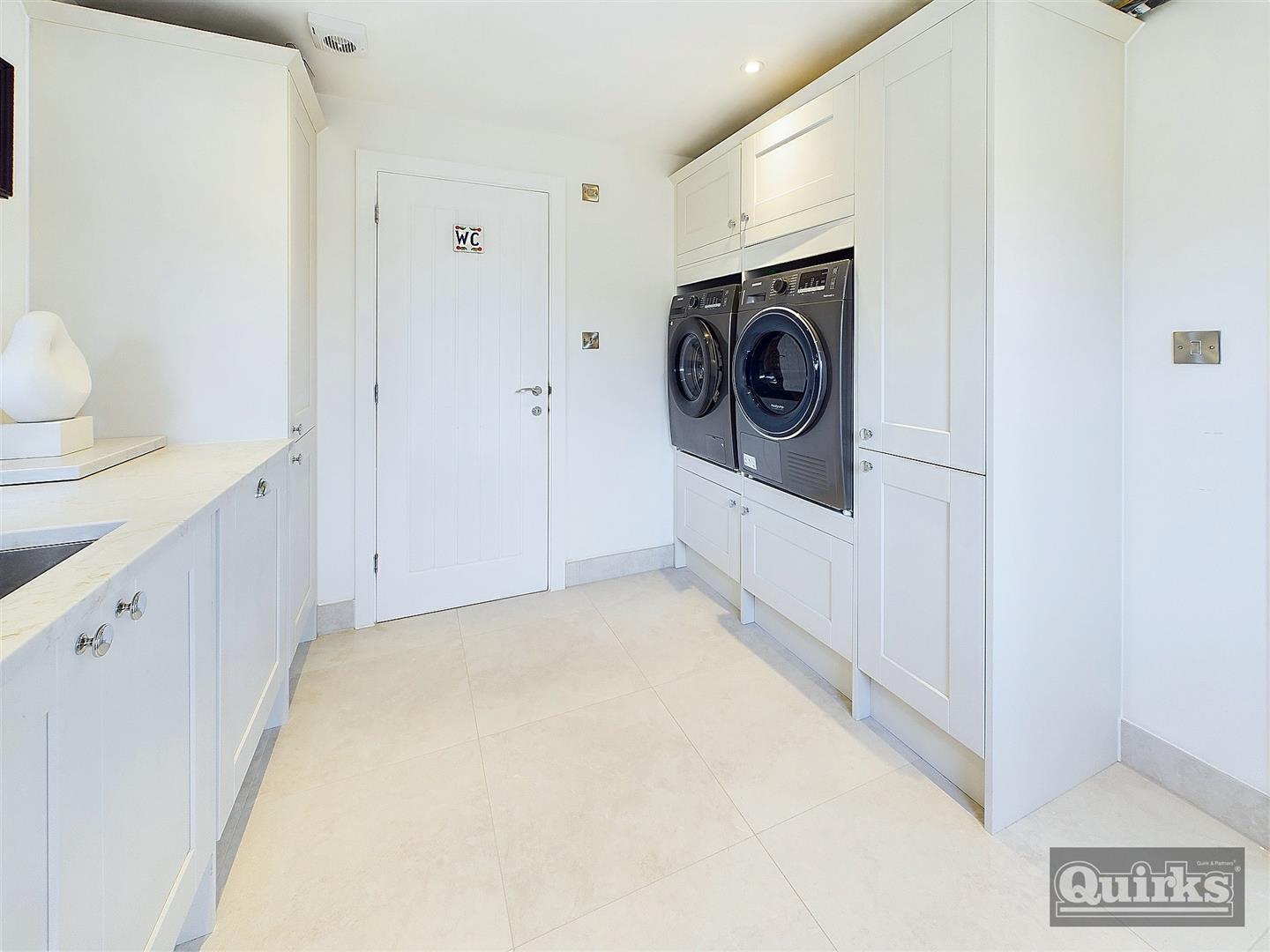 High specification kitchen with integrated appliances and marble worksurfaces, marble island with inset sink, built in oven and grill, fitted hob with extractor over, marble splash backs, underfloor heating. Dining area has a Lantern for natural light, underfloor heating, windows and bi-fold doors to garden