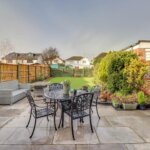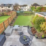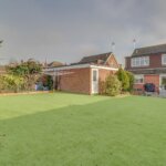 Commencing with extensive porcelain patio to immediate rear with remainder laid to artificial lawn with flower and shrub borders. Gate to side. External tap to front.
