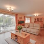 Double glazed window and double glazed patio doors to rear garden. Radiator. Sandstone fireplace with gas heater. Laminate finish to floor. Coved ceiling.