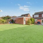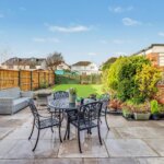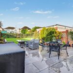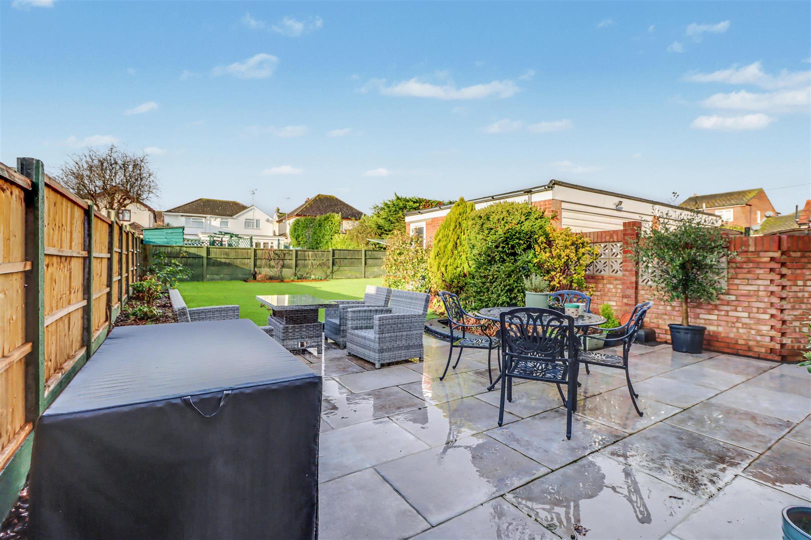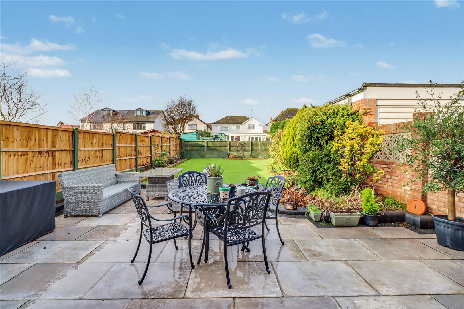 Commencing with extensive porcelain patio to immediate rear with remainder laid to artificial lawn with flower and shrub borders. Gate to side. External tap to front.