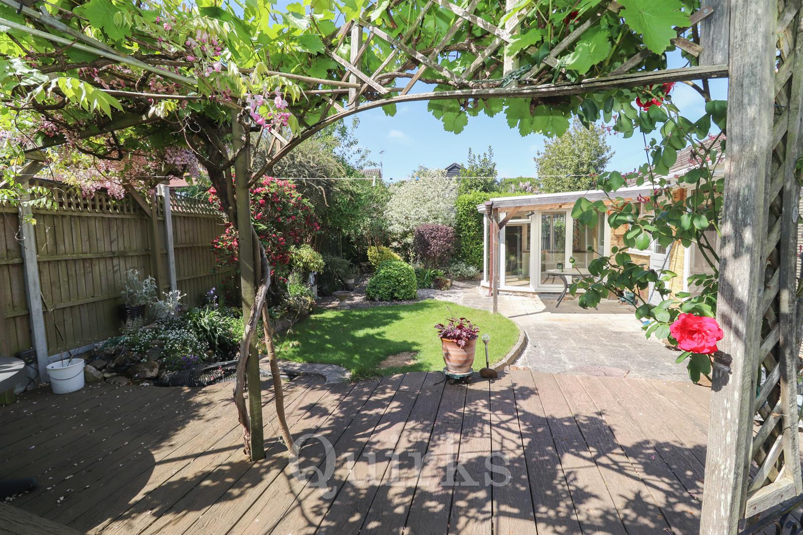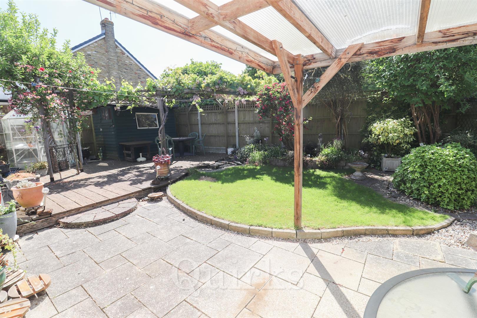 Located in one of Billericay’s most desirable areas and within the catchment of Buttsbury Primary School and Mayflower High School, this two-bedroom detached bungalow offers significant potential. Positioned on a wider-than-average plot, the property requires modernisation but benefits from a spacious layout and practical features. The property’s central hallway provides access to a bright lounge that spans the full depth of the bungalow, featuring a bay window at the front and floor to ceiling windows looking out onto the garden, to the rear. Adjacent is a dining area with space for a six-seater table and additional garden access. The kitchen includes base and eye-level units, a double sink, and an oven with a hob, providing a good foundation for updating. The master bedroom, a well-proportioned double with built-in storage, opens directly into the conservatory, which leads to the garden. The second double bedroom, positioned at the front of the property, is equally spacious and benefits from a bay window. The wet room is fitted with an overhead shower, screen door, sink, and WC. Externally, the south-facing garden measures approximately 25ft in depth by 45ft in width, offering a decking area, patio with wooden canopy, and multiple seating options, complemented by a water feature. The property includes a carport with space for one to two vehicles, a driveway, and a workshop at the rear of the garage. This detached bungalow presents an excellent opportunity for buyers seeking to modernise a property in a prime location, combining a spacious layout with strong potential for further improvement.