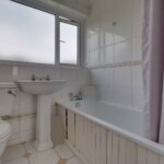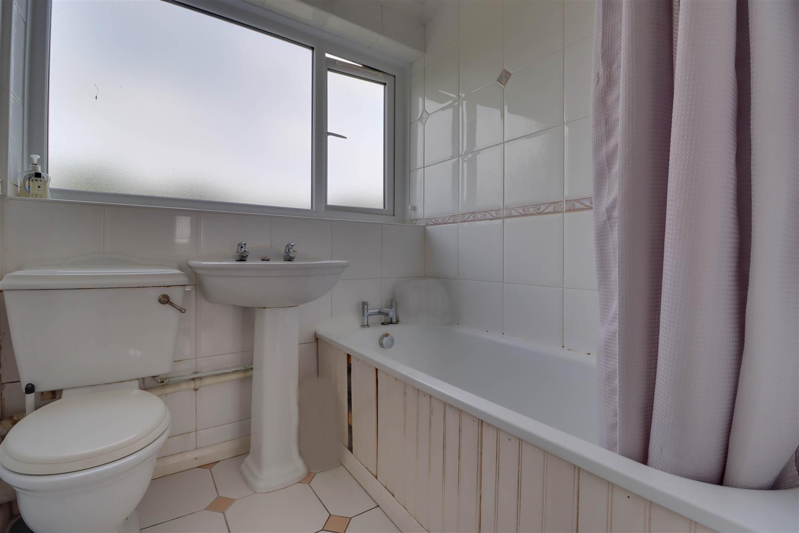 Double glazed opaque window to rear. Suite comprising of low level WC, wash hand basin and panel enclosed bath unit with shower attachment. Part tiling to walls. Tiling to floor.