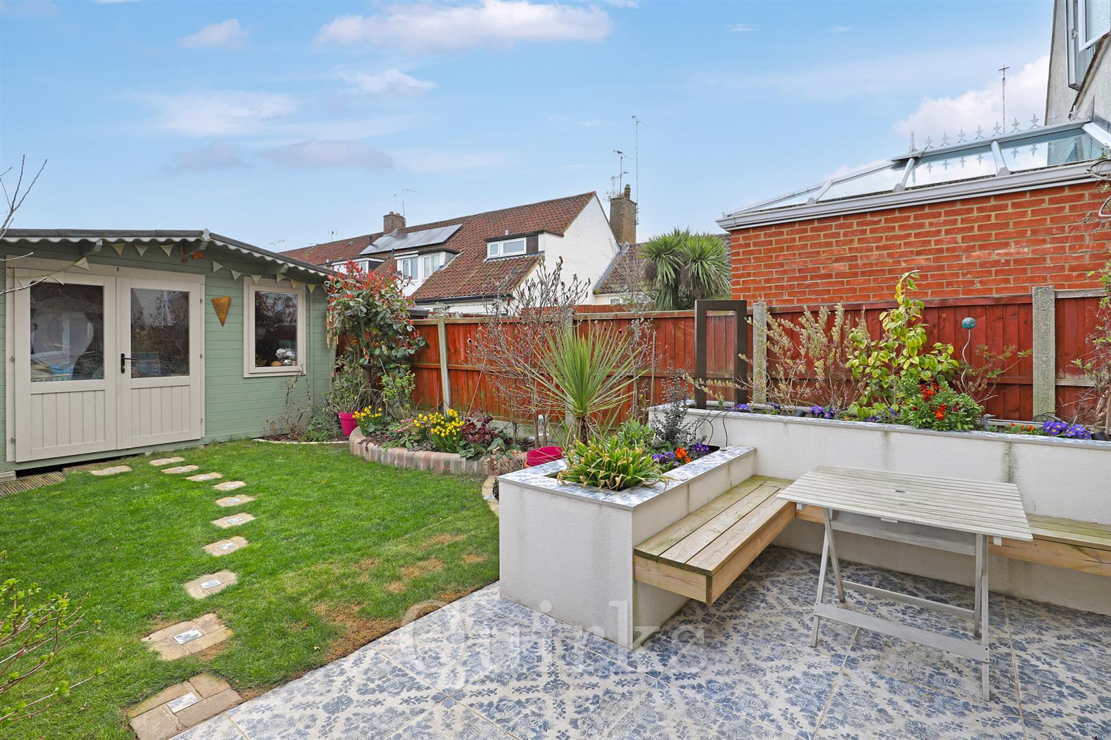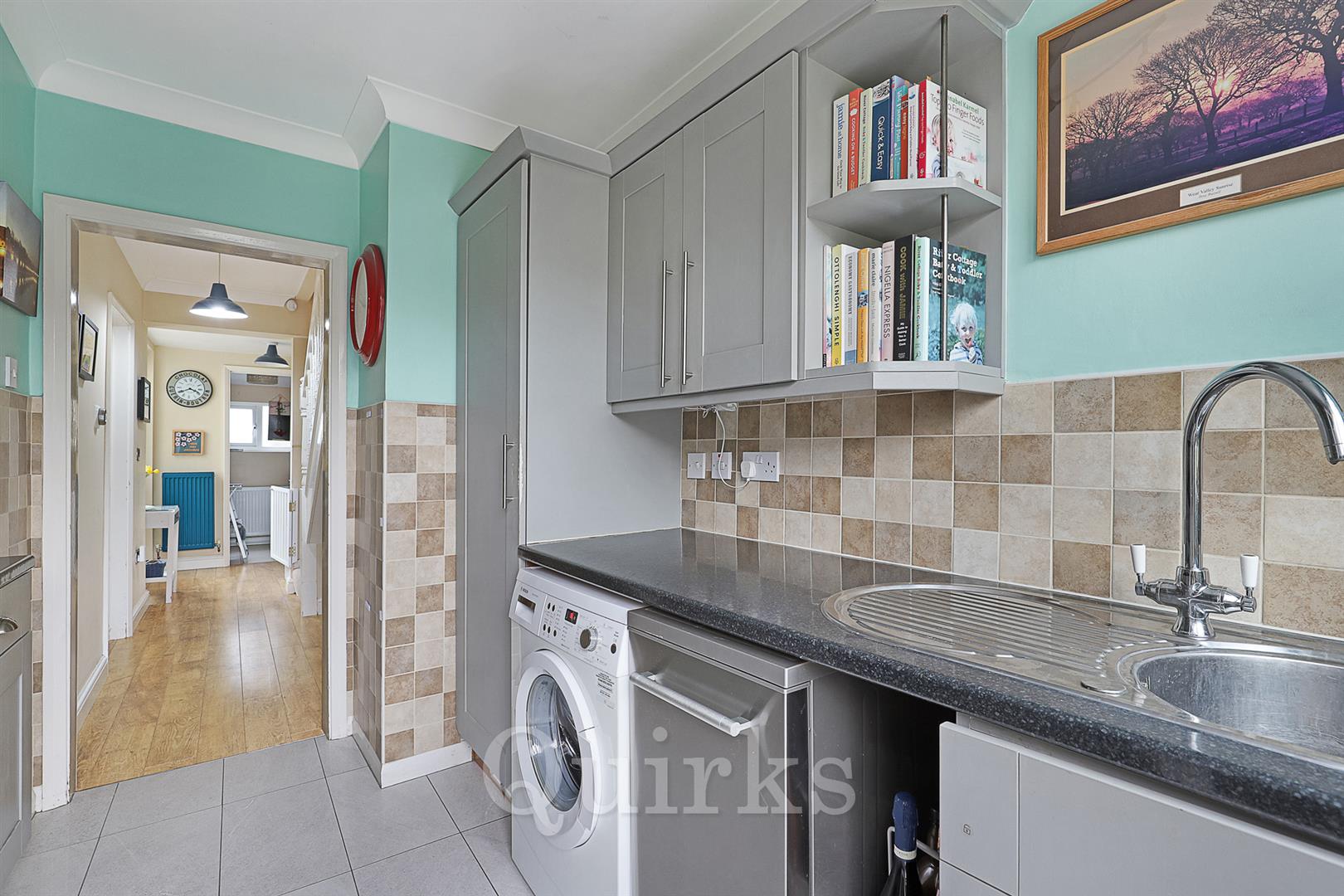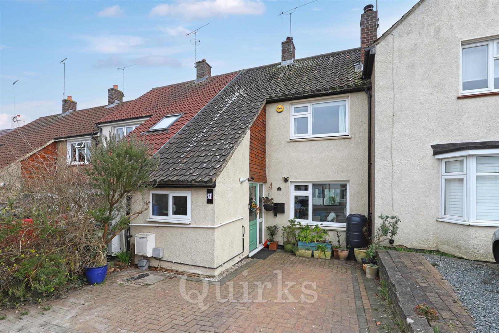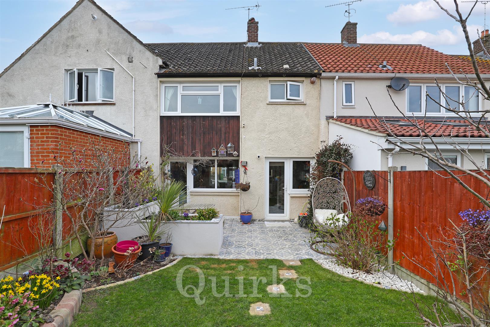 Nestled in a quiet cul-de-sac in Billericay, this charming terraced house boasts two generously sized double bedrooms. Upon entry, you are welcomed by a bright and airy entrance hall. To the left, a well-appointed utility room provides space for a freezer, tumble dryer, and additional storage. Beyond the hallway, the spacious lounge comfortably accommodates a sofa and a four-seater dining table, creating a warm and inviting living space. The well-presented kitchen features an integrated oven with a gas hob above, along with a built-in fridge for added convenience. Upstairs, the first floor hosts two double bedrooms, both well-proportioned, alongside a modern bathroom fitted with a three-piece suite and an overhead shower. A boarded loft offers further storage options. Externally, the beautifully landscaped garden has been thoughtfully designed, beginning with a patio area perfect for outdoor seating. A calming water feature, ambient lighting, and mature borders enhance the space. At the rear, a fully powered log cabin with electricity and WiFi provides an ideal setting for a home office or games room. To the front of the property, a driveway offers off-street parking for one car.