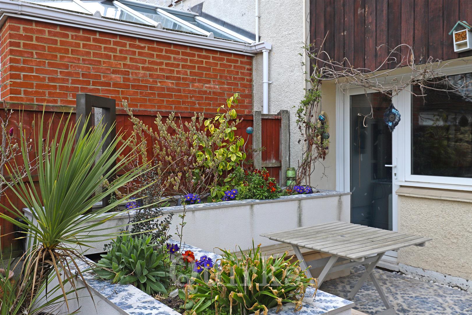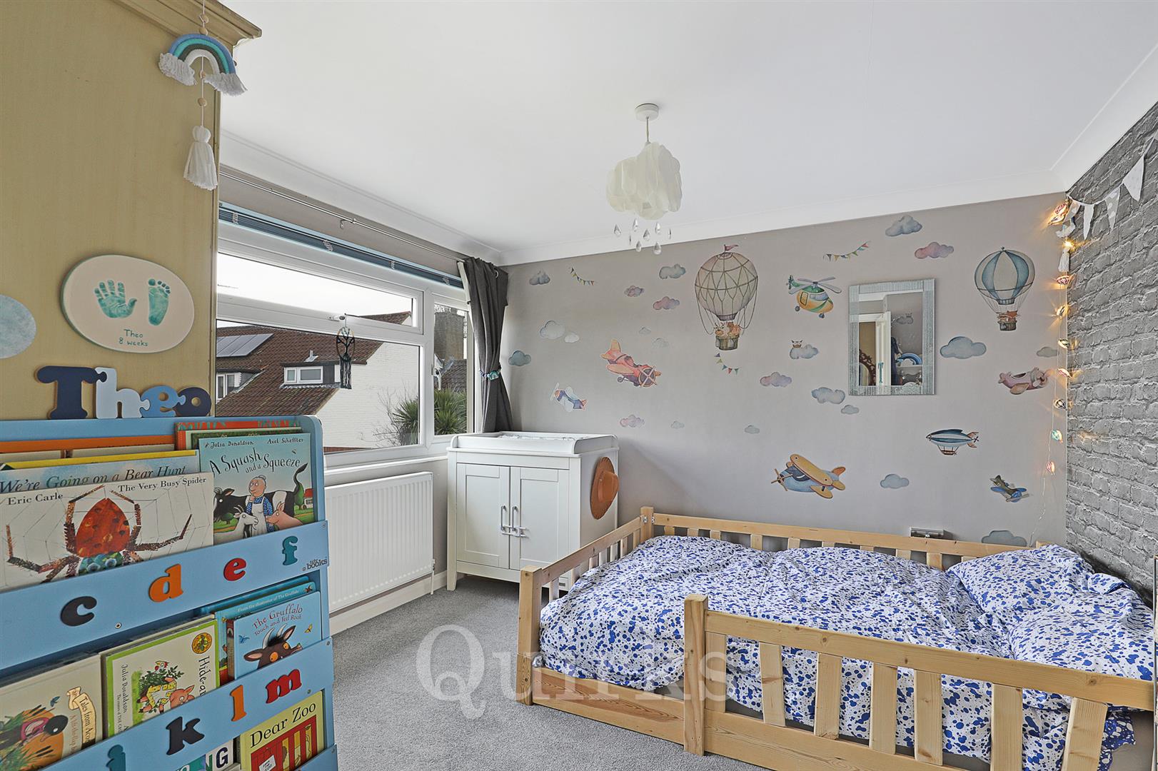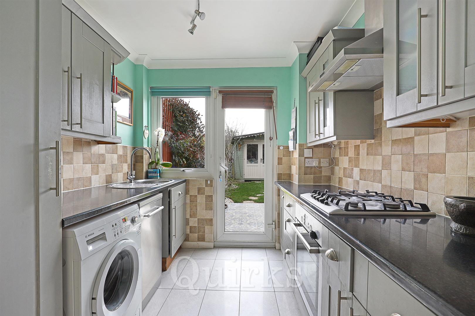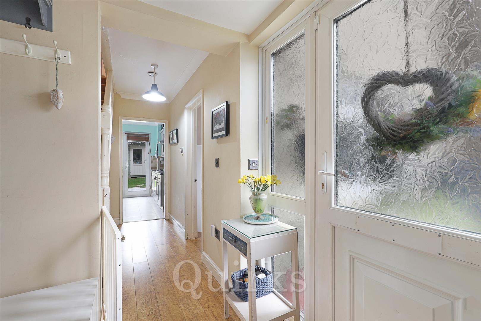 Nestled in a quiet cul-de-sac in Billericay, this charming terraced house boasts two generously sized double bedrooms. Upon entry, you are welcomed by a bright and airy entrance hall. To the left, a well-appointed utility room provides space for a freezer, tumble dryer, and additional storage. Beyond the hallway, the spacious lounge comfortably accommodates a sofa and a four-seater dining table, creating a warm and inviting living space. The well-presented kitchen features an integrated oven with a gas hob above, along with a built-in fridge for added convenience. Upstairs, the first floor hosts two double bedrooms, both well-proportioned, alongside a modern bathroom fitted with a three-piece suite and an overhead shower. A boarded loft offers further storage options. Externally, the beautifully landscaped garden has been thoughtfully designed, beginning with a patio area perfect for outdoor seating. A calming water feature, ambient lighting, and mature borders enhance the space. At the rear, a fully powered log cabin with electricity and WiFi provides an ideal setting for a home office or games room. To the front of the property, a driveway offers off-street parking for one car.