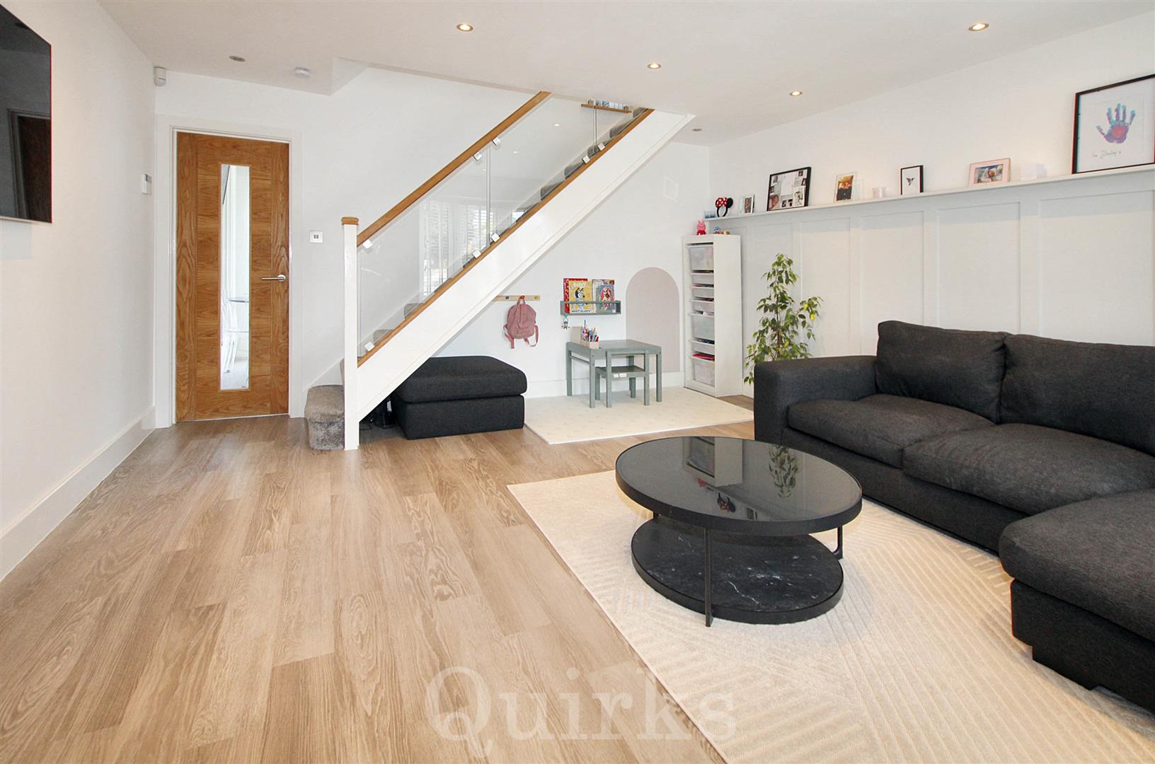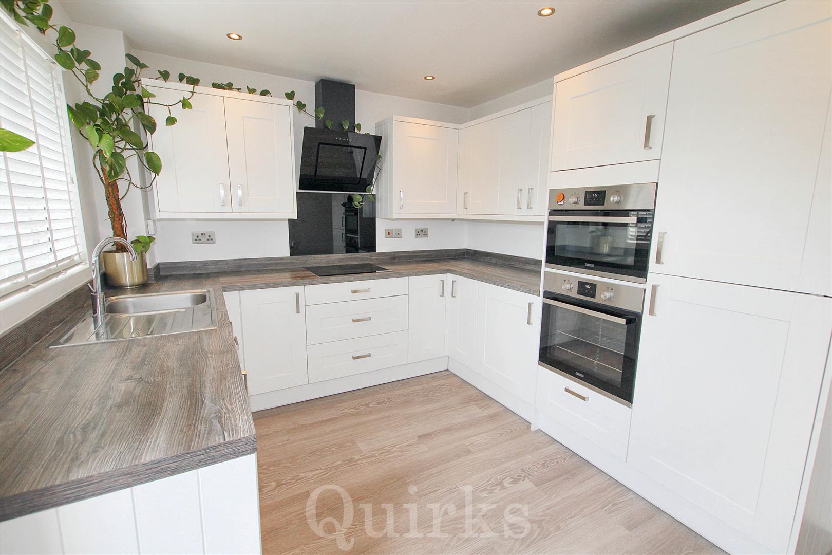 A stunning three bedroom end of terrace, family home, presented to a high standard throughout. This property is located within close proximity of schools, convenience shops and Billericay Mainline Railway Station. Recently updated throughout, the accommodation includes an entrance porch,, with built-in storage, leading to the beautifully decorated, 14ft square living room, with staircase and glass balustrading and wiring for wall mounted TV. The kitchen / dining room overlooks the rear garden, with door access. There is a range of modern wall and base level units, with integrated appliances, including fridge/freezer, dishwasher, oven, grill, induction hob, extractor fan and space for washing machine. The first floor landing benefits from a feature side window and access to the loft area which houses the combination gas boiler and partly boarded storage area. The family bathroom is fully tiled and well appointed, with a modern white suite. including, P-shaped bath, with shower above, low level W.C, vanity unit wash hand basin and chrome heated towel rail. Bedrooms one and two have the advantage of built-in double wardrobes, bedroom three is currently arranged as home office / study, but would also make an ideal children's bedroom. Externally the North West facing rear garden is landscaped, with artificial lawn and patio area, steps down to planting area, with concrete base for storage shed, side gate access. Adjacent to the property is off road parking and a garage.