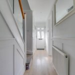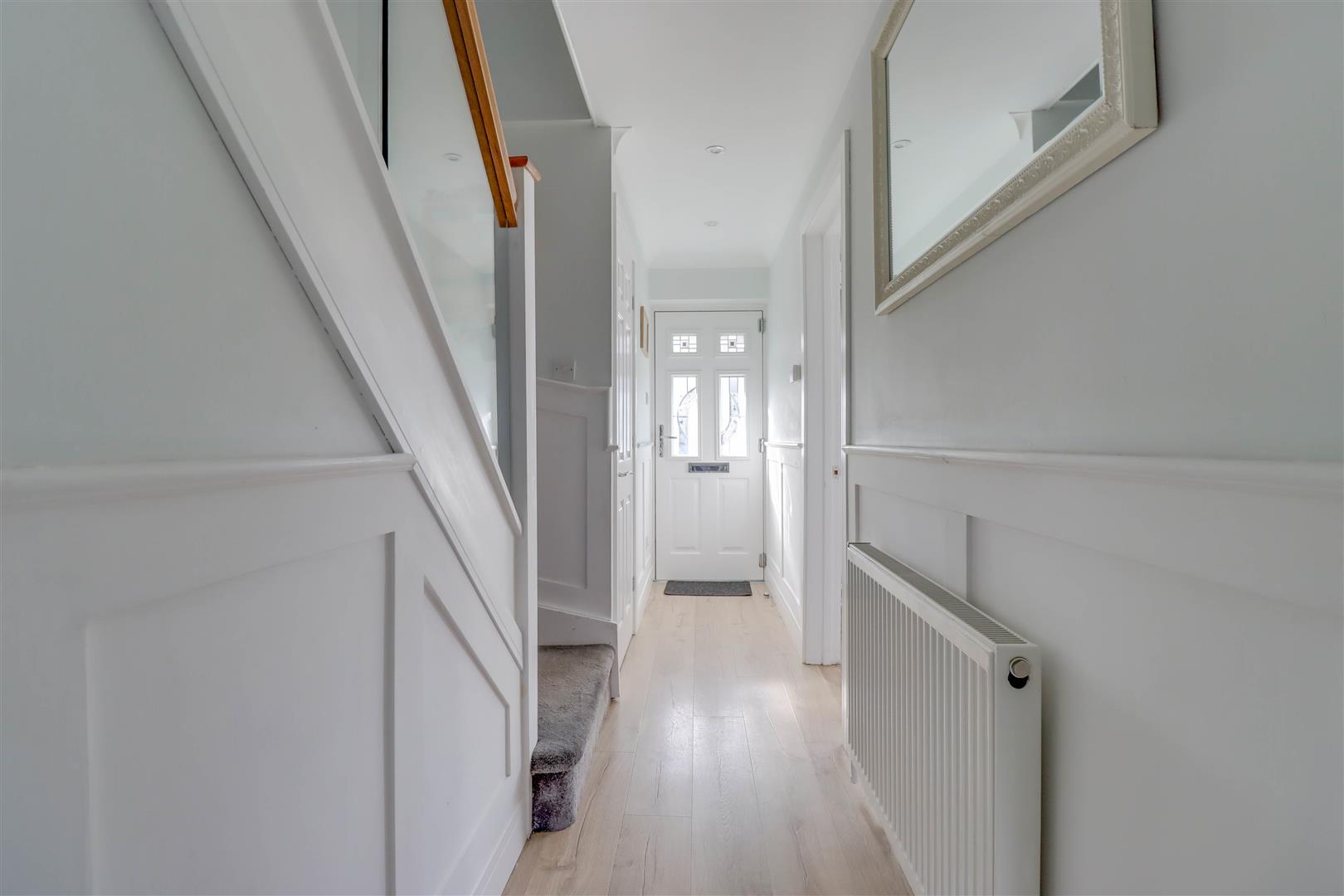 Radiator. Under stairs cupboard. Laminate finish to floor. Coved ceiling with downlighters.